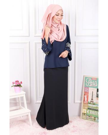 > Sold Out Items > QA-585 EMBROIDERY FLARE TOP NAVY BLUE