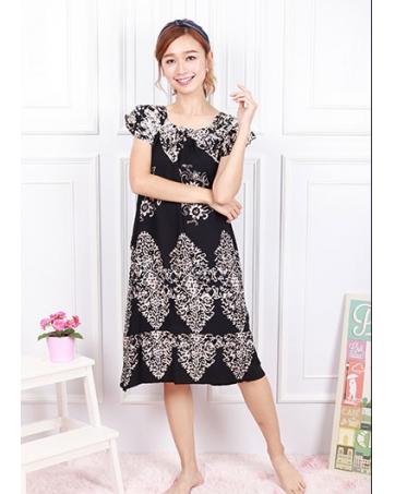QA-604 Neckline Kaftan Sleeping Dress Black