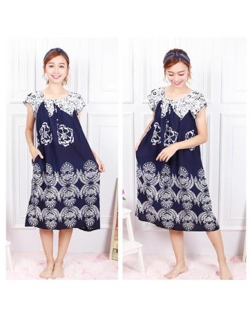 QA-604 Neckline Kaftan Sleeping Dress Navy Blue