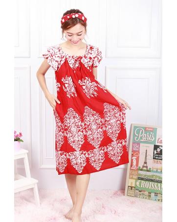 QA-604 Neckline Kaftan Sleeping Dress Red