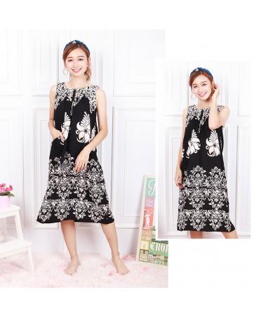 QA-605 Sleeveless Kaftan Sleeping Dress Black