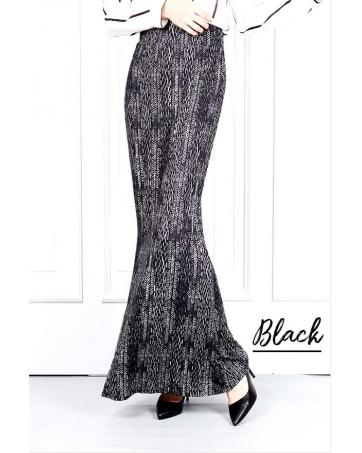 QA-622 PRINTED MERMAID MAXI SKIRT BLACK