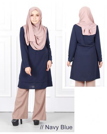 QA-630 FRONT ZIP JASMINE BLOUSE NAVY BLUE