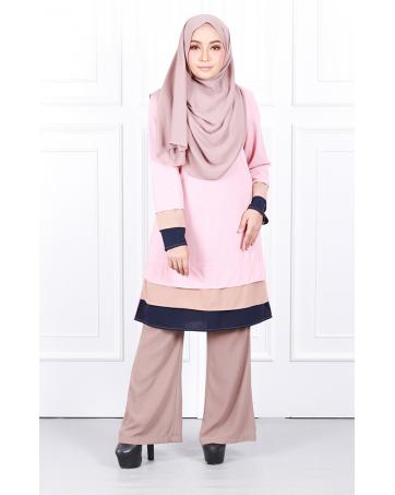 QA-632 TRI COLORS LAYERED BLOUSE LIGHT PINK