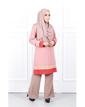 QA-632 TRI COLORS LAYERED BLOUSE PINK