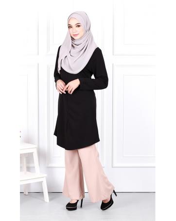 QA-634 BUTTON TUNIC BLOUSE BLACK