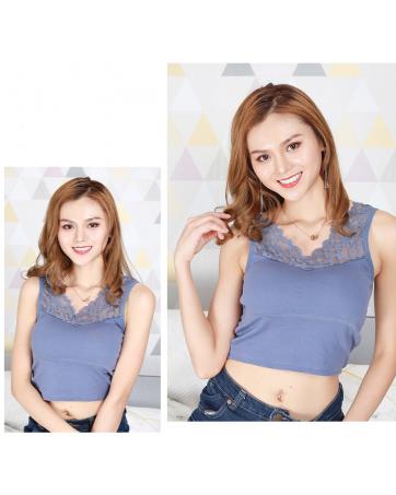QA-683 WOMEN'S LACE SINGLET BLUE GREY