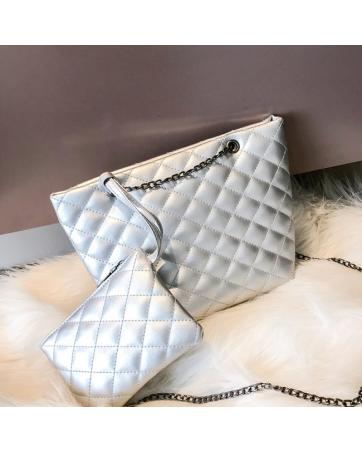 KW80615 2 IN 1 WOMEN'S HANDBAG SILVER