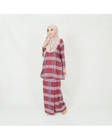 SW5200 CHECKER PRINTED KURUNG MAROON