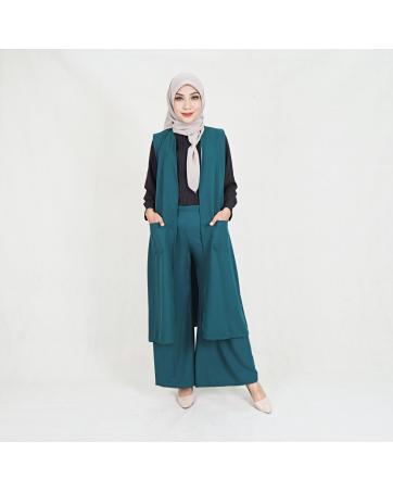 SW5209 WOMEN'S FASHION BLOUSE & PANT SET EMERALD GREEN