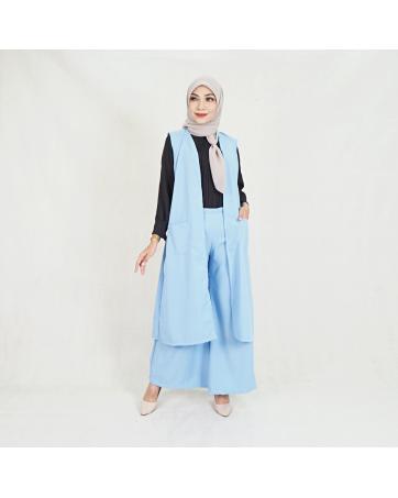 SW5209 WOMEN'S FASHION BLOUSE & PANT SET BABY BLUE