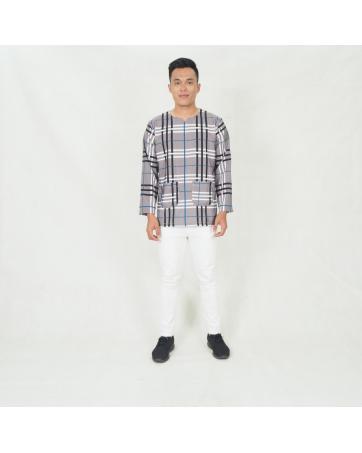 SW5219 MEN CHECKER PRINTED KURTA GREY