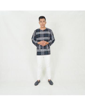 SW5219 MEN CHECKER PRINTED KURTA BLACK
