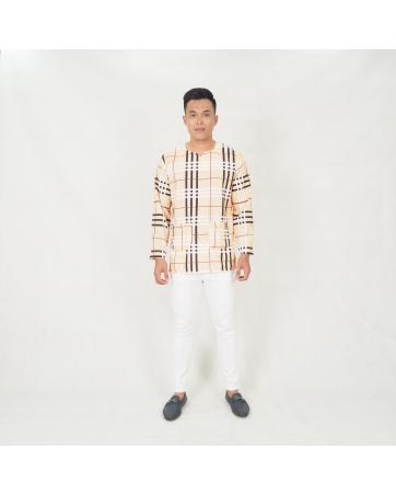 SW5219 MEN CHECKER PRINTED KURTA CREAM