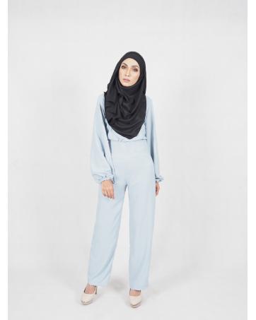 SW5366 High Waist Set Blouse+Pants Light Blue