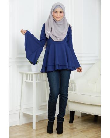 SW5378 PLUS SIZE PEPLUM BLOUSE NAVY BLUE