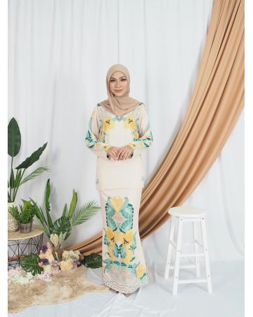 SW5404 Floral Printed Baju Kurung Cream