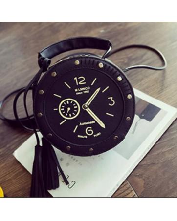KW80824 Round Clock Women's Sling Bag Black