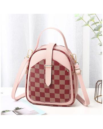 KW80829 Women's Checker Sling Bag Pink Brown Square