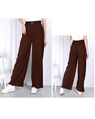 QA-811 PLEATED WIDE LONG PANTS BROWN