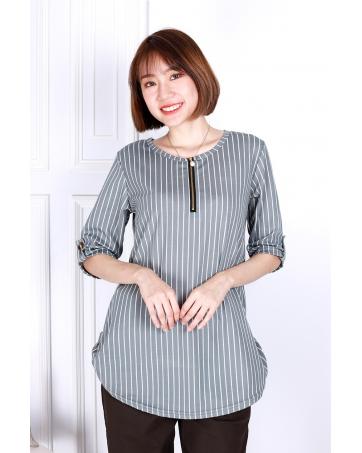 QA-824 STRIPED ZIPPER BLOUSE GREY