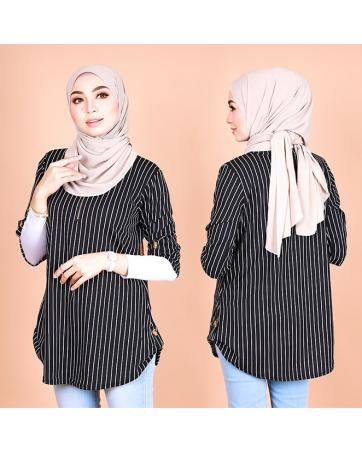 QA-824 STRIPED ZIPPER BLOUSE BLACK