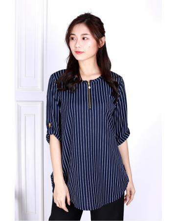 QA-824 STRIPED ZIPPER BLOUSE NAVY BLUE