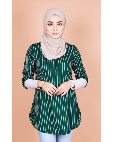 QA-824 STRIPED ZIPPER BLOUSE GREEN