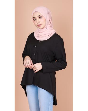 QA-831 V NECK BUTTON BLOUSE BLACK