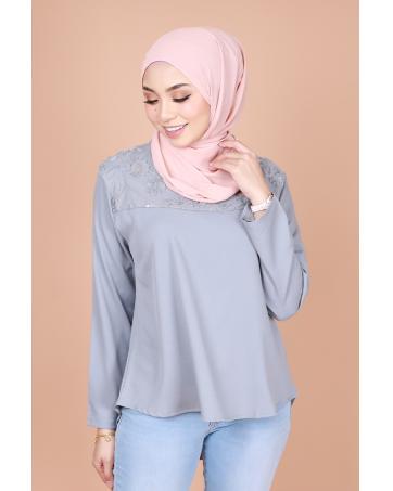QA-834 FLOWER LACE BLOUSE GREY