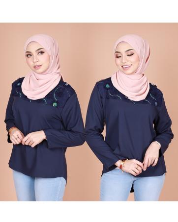 QA-834 FLOWER LACE BLOUSE NAVY BLUE