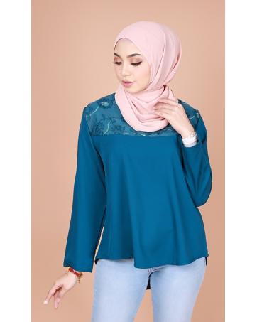 QA-834 FLOWER LACE BLOUSE TEAL BLUE