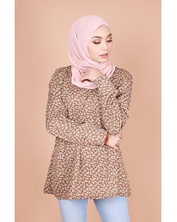 QA-835 FLORAL PRINTED BLOUSE LIGHT BROWN