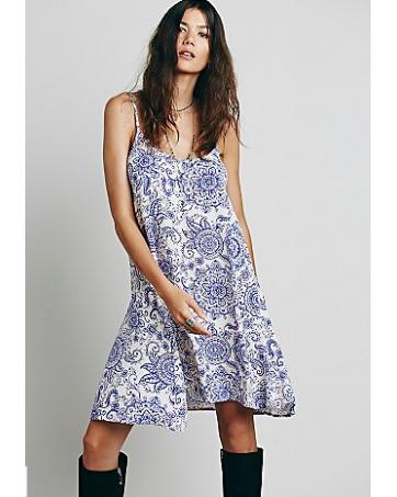 BM71424 Printed Sleeveless Dress Blue