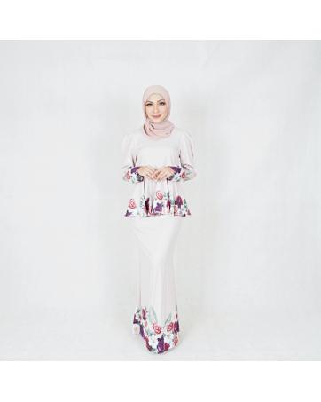 SW5441 Modern Flower Peplum Baju Kurung Cream