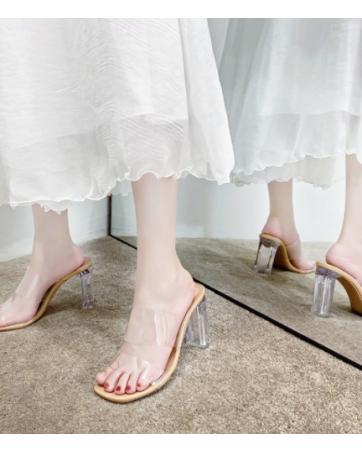 KL795 - Trendy Glass Heels 9CM Brown