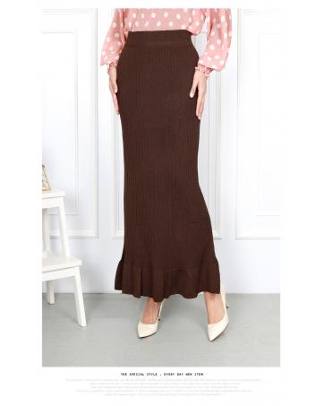 QA-841 - Fashion Knitted Ruffle Duyung Skirt Brown
