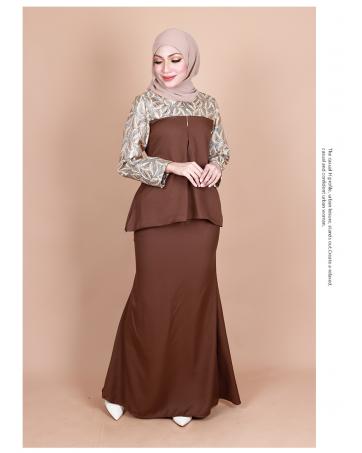 QA-849 - Fashion Peplum Baju Kurung Set Brown