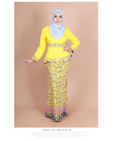 QA-850 - Trendy Peplum Flora Baju Kurung Set Yellow