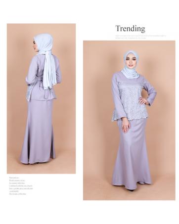 QA-851 - Stylish Lace Baju Kurung Set Grey