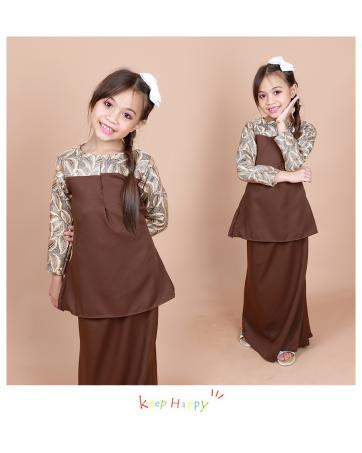 QA-853 - Kids Lace Sleeve Peplum Baju Kurung Brown