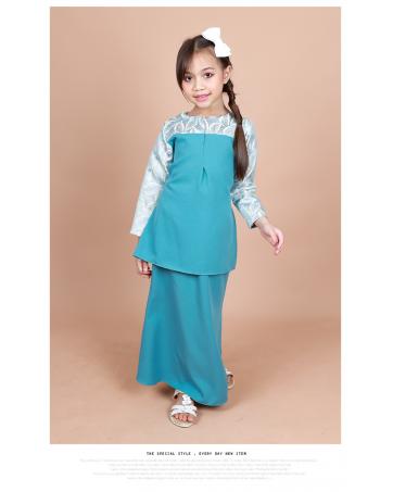 QA-853 - Kids Lace Sleeve Peplum Baju Kurung Green