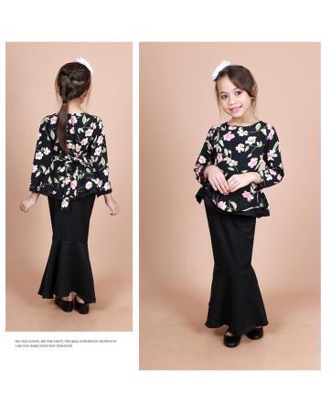 QA-856 - Kids Flora Layer Peplum Baju Kurung Black