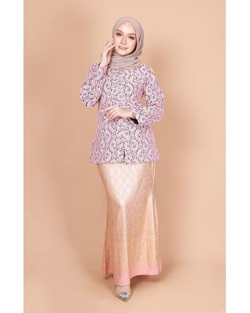 QA-877 - Full Lining Lace Baju Kurung Pink