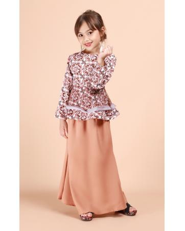 QA-881 - Sweet Kids Lace Peplum Baju Kurung Beige
