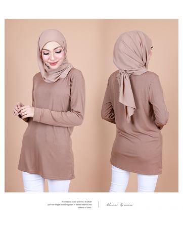 QA-884 - Simple Solid Long Sleeve Blouse Khaki